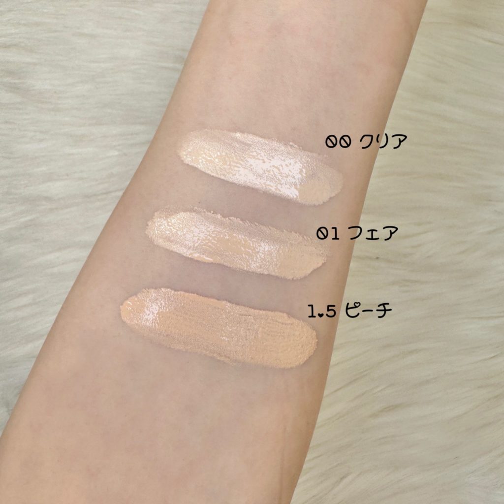 カラーは00 クリア/01 フェア/1.5 ピーチ/02 ヌード/03 ナチュラルの5色。明るめの色展開が多いので、韓国メイクらしい明るいベースを作りたい人にもぴったりです。