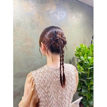 アップスタイルや巻き下ろし、編み込みなど幅広いヘアアレンジに対応し、シーンに合わせた提案が可能。トレンドを押さえつつ、崩れにくい仕上がりを重視している点が特徴です。特別な日を安心して迎えたい方に向いています。