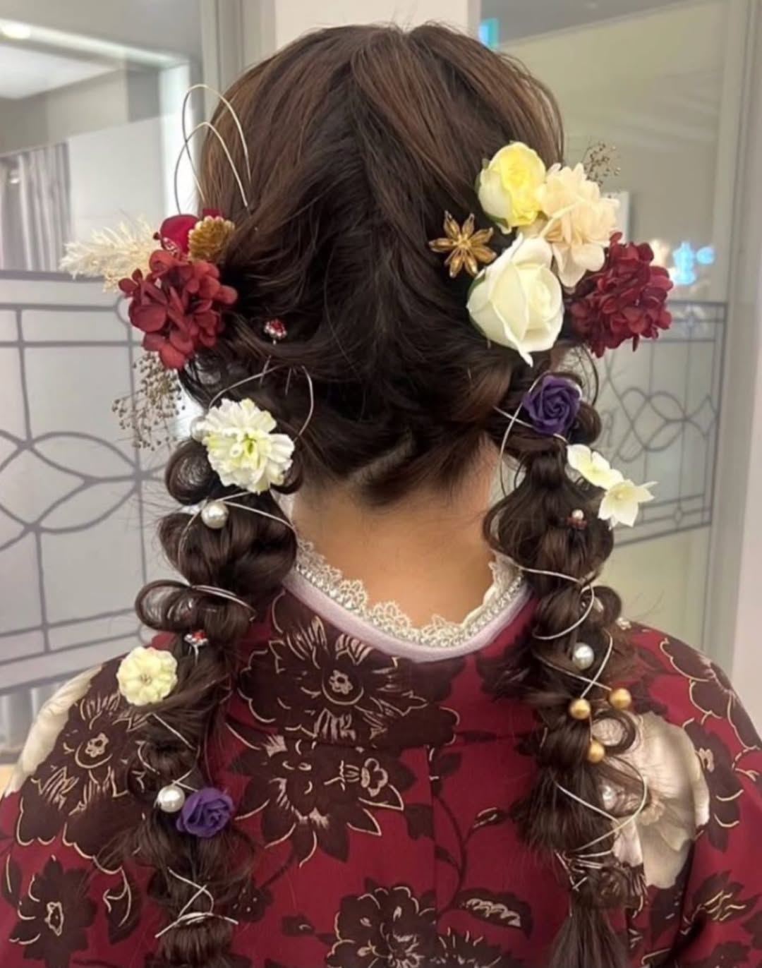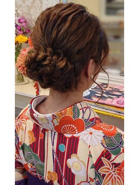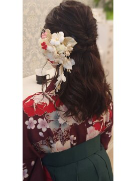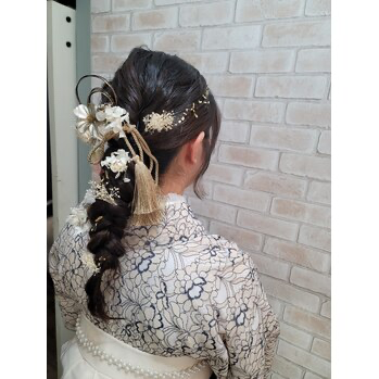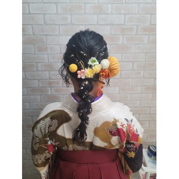 ヘアセットは2,500円~。結婚式や卒業式、謝恩会、推し活など特別な日の利用が多く、着付けメニューも充実。振袖や袴とのセットプランも用意されています。