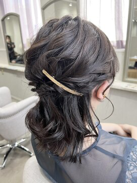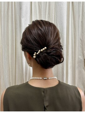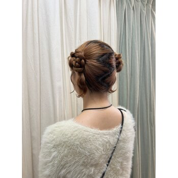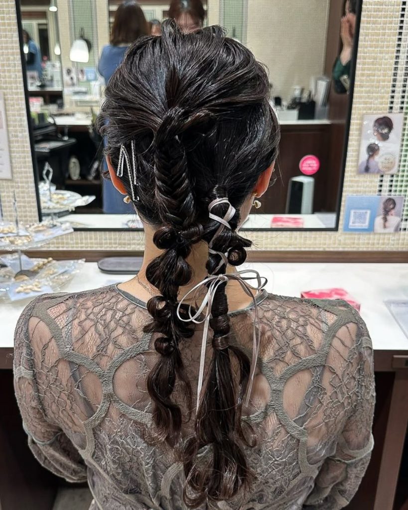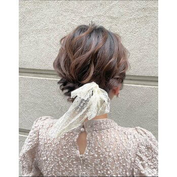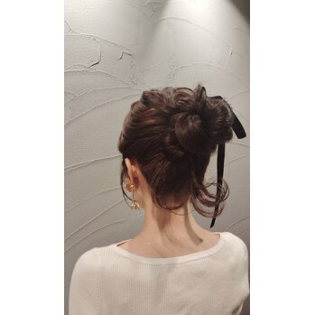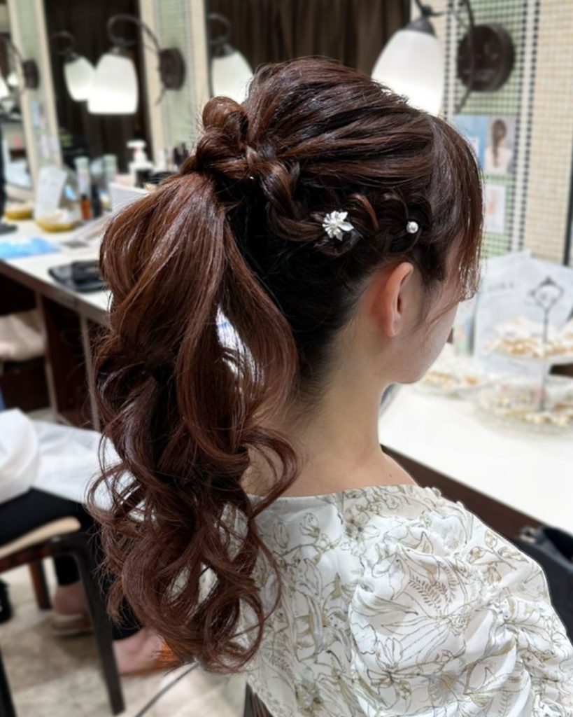 ヘアセットは4,000円。作り込みすぎないラフでゆるめのアレンジでも、夜まで崩れにくいキープ力が特長です。ショートやボブのアップスタイルにも対応しており、長さを問わず相談できます。