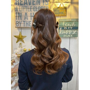 「ただ盛るだけじゃなくて、今っぽくオシャレにしたい」ならここ。絶妙なニュアンスのおくれ毛や、自撮りで小顔に見えるセットが得意です。