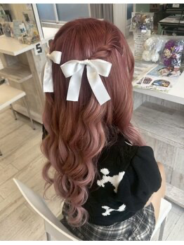 推しカラーのリボン持ち込みも大歓迎。概念ヘアの相談も親身に乗ってくれます。