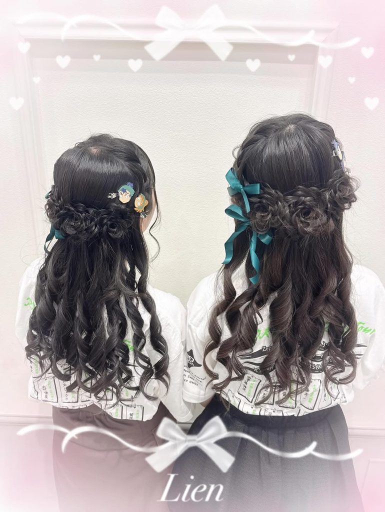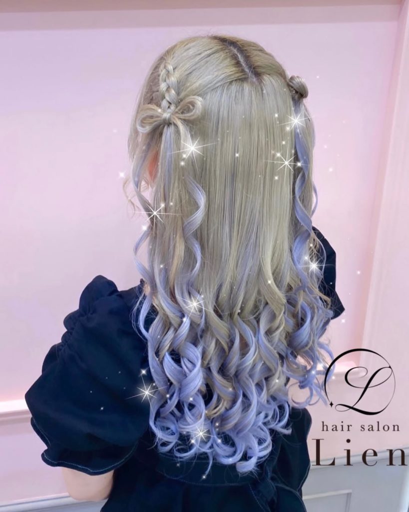 リボン編み込みやハートヘアのクオリティがとにかく高く、心斎橋のライブハウスに向かう女の子たちが集まる人気店。