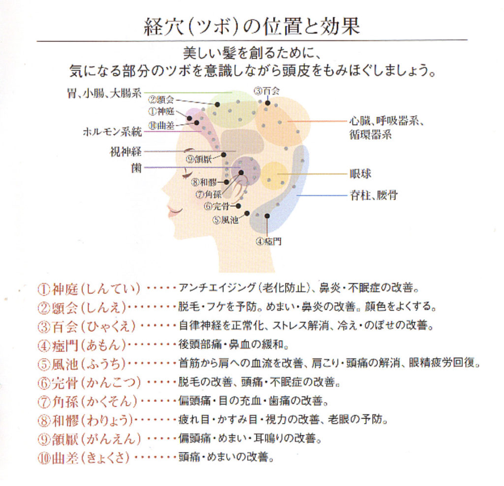 頭には沢山のツボが存在しています。これらを刺激する事でさまざまな効果が期待できます。